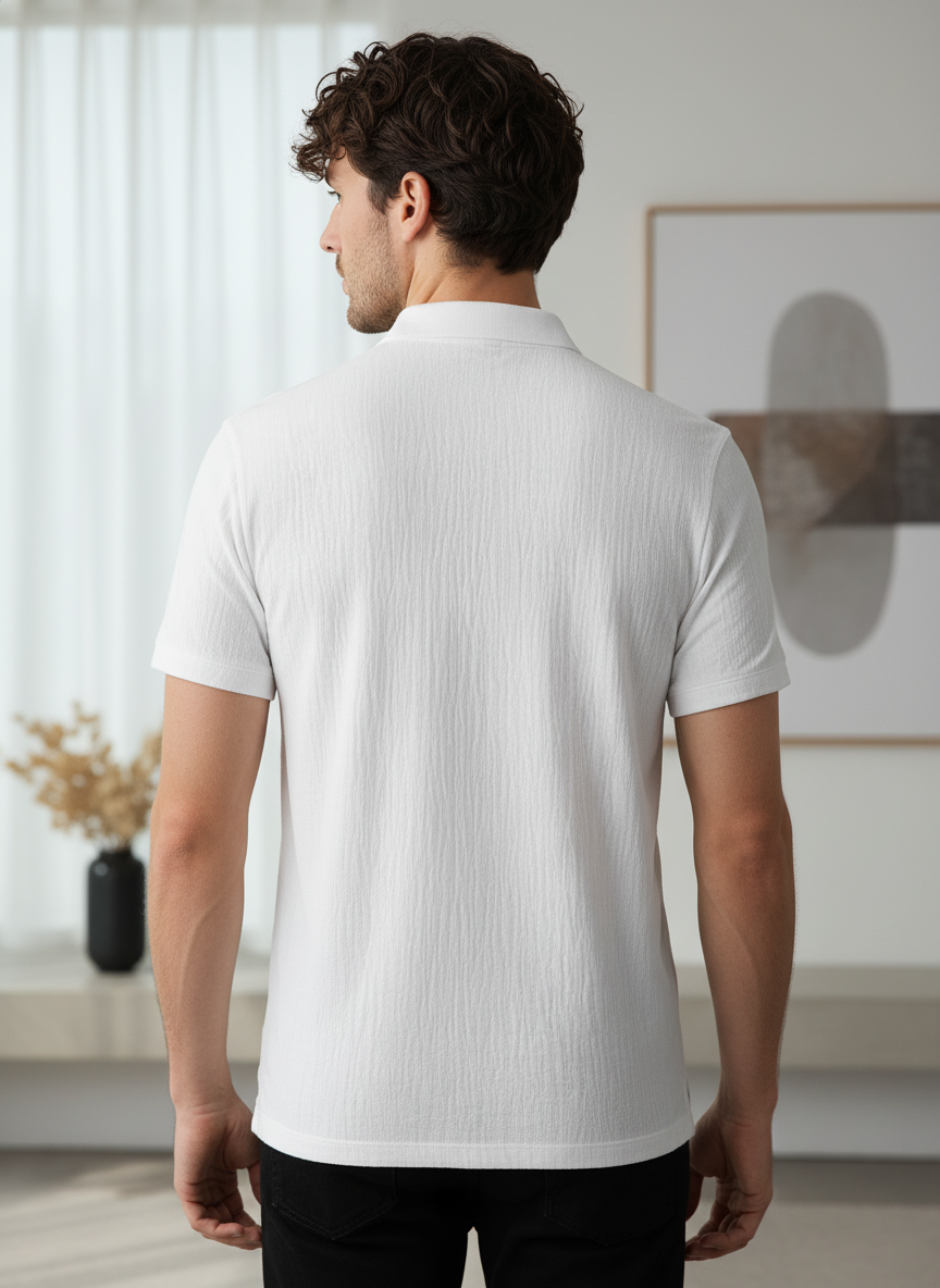 Upgrade your everyday wardrobe with this Men’s Textured Polo T-Shirt, crafted using a premium popcorn blend fabric for unbeatable comfort and a stylish modern look. The unique textured surface gives this polo a premium feel while keeping it lightweight, breathable, and perfect for all-day wear.